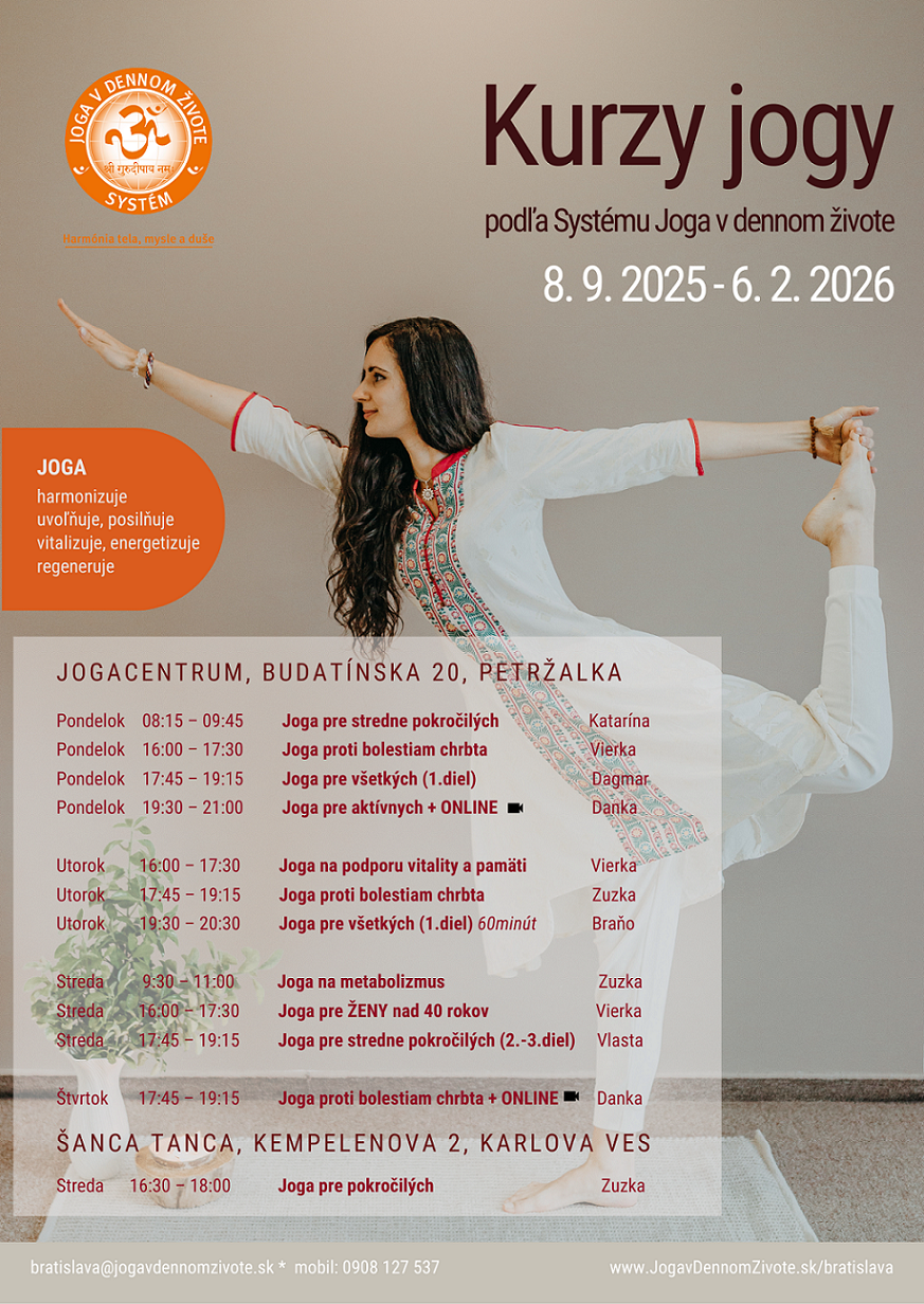 Ak chcete odoberať novinky e-mailom, napíšte nám, prosím, na mail: bratislava@jogavdennomzivote.